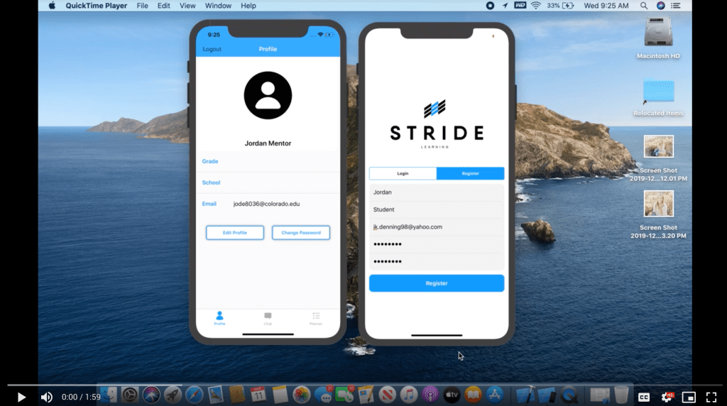 “Welcome to Stride Learning. Stride Learning is a mentoring center for students with ADD, ADHD and other executive functioning needs who might need a little extra help mastering organization and various school subjects. We set out to create an app that the students and mentors would use as a tool to encourage organization, foster communication, and alleviate some of the stress that comes with planning a busy school schedule. Our goal specifically is to help streamline the planning and communication tools that are needed for both mentors and students that are a part of the program.